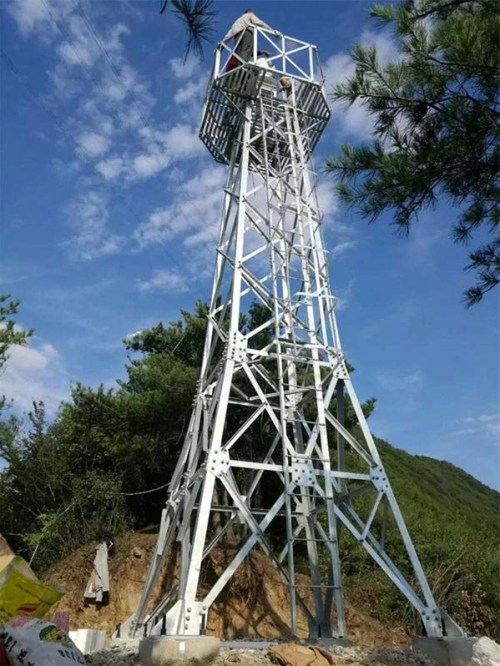 我公司專業(yè)生產森林防火監(jiān)控塔、防火了望塔、鋼結構監(jiān)控塔。監(jiān)控塔(了望塔)即森林防火監(jiān)控塔由塔體、平臺、瞭望室、旋轉爬梯等組成,結構緊湊,經久耐用,是理想的火情監(jiān)控,登高眺望,監(jiān)視指揮工作臺。 我公司以新穎的設計,合理的價格,完善的服務,優(yōu)質的產品,滿足客戶各種類型塔的工藝要求,引領國內塔藝現(xiàn)代潮流,其研發(fā)能力,產品創(chuàng)新能力始終走在行業(yè)領域前沿。塔體一般采用四柱角鋼結構,設有避雷針、工作平臺及旋轉爬梯。塔體鋼材采用Q235鋼,其技術條件應符合GB:700-88標準之規(guī)定。